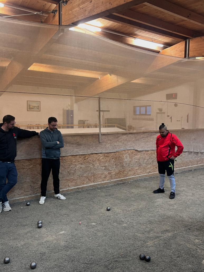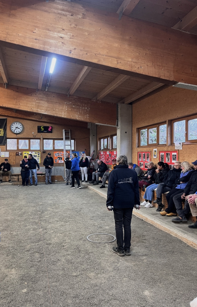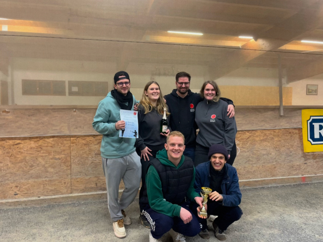 In einem spannenden Auftaktspiel gegen die Mannschaft aus Unterensingen musste sich lediglich das Triplette geschlagen geben, die beiden Doubletten konnten dagegen zu 6 bzw. zu 7 gewonnen werden, wodurch ein erster 2:1 Sieg zu Buche stand. Nun vollends warmgespielt konnte in der zweiten Runde mit unveränderter Aufstellung (Nina mit Hugo und Felix mit Lukas in den Doubletten, Béla, Aaron und Bea im Triplette) ein klarer 3:0 Sieg gegen das Team aus Tübingen eingefahren werden. Frisch gestärkt ging es nach einer kurzen Spielpause in der 4. Runde schließlich gegen die vereinsinterne Konkurrenz aus der zweiten Mannschaft. Nachdem Felix und Bea ihr Doublette hier relativ zügig zu 3 für sich entscheiden konnten, wurde es in den beiden übrigen Begegnungen noch einmal spannend. Schließlich konnten sich aber sowohl im anderen Doublette Aaron und Béla zu 12, als auch im Triplette Nina, Hugo und Lukas zu 11 durchsetzen, wodurch auch hier ein Endstand von 3:0 erreicht werden konnte.